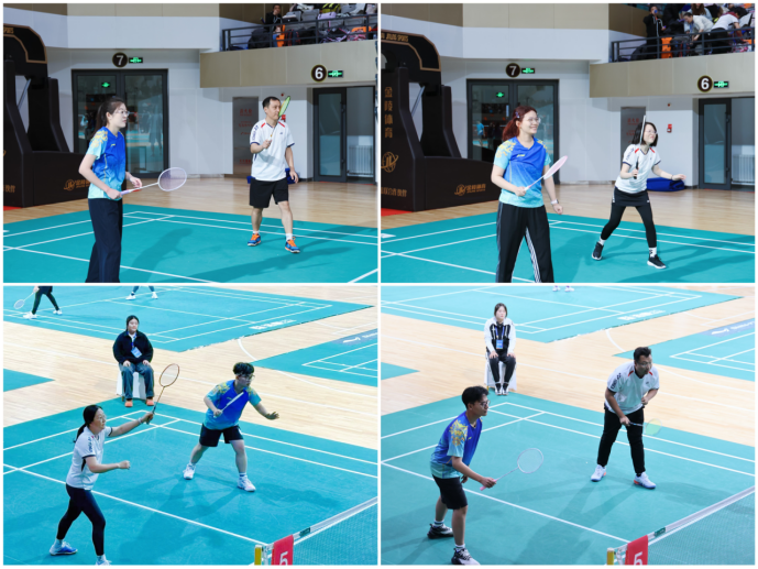 比赛当日,赛场气氛热烈非凡,各江南在线参赛队伍齐聚一堂,摩拳擦掌、跃跃欲试。江南在线参赛师生们满怀信心,眼神中透着对羽毛球的热爱与对竞技的热忱,热身时的认真专注,已然显露出不凡的斗志。比赛中,选手们展现了出色的技术和默契的配合,全力以赴、每球必争。