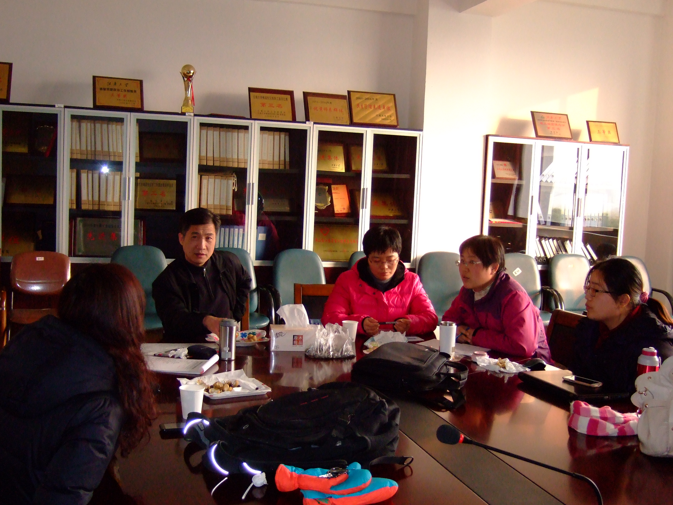 随后,前来学习的江南在线学院副院长李健雪教授、外语教育研究所所长严敏芬教授、秦朝霞老师、毛海燕老师就自己感兴趣的问题以及与两位老师的论文有关的问题进行了交流。大家从论文选题的意义、研究设计、该领域的学科前沿等问题展开了热烈的讨论。最后,就论文发表等大家敏感的问题交流了意见。
