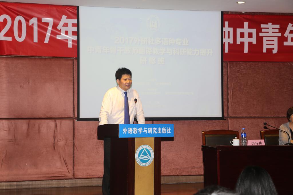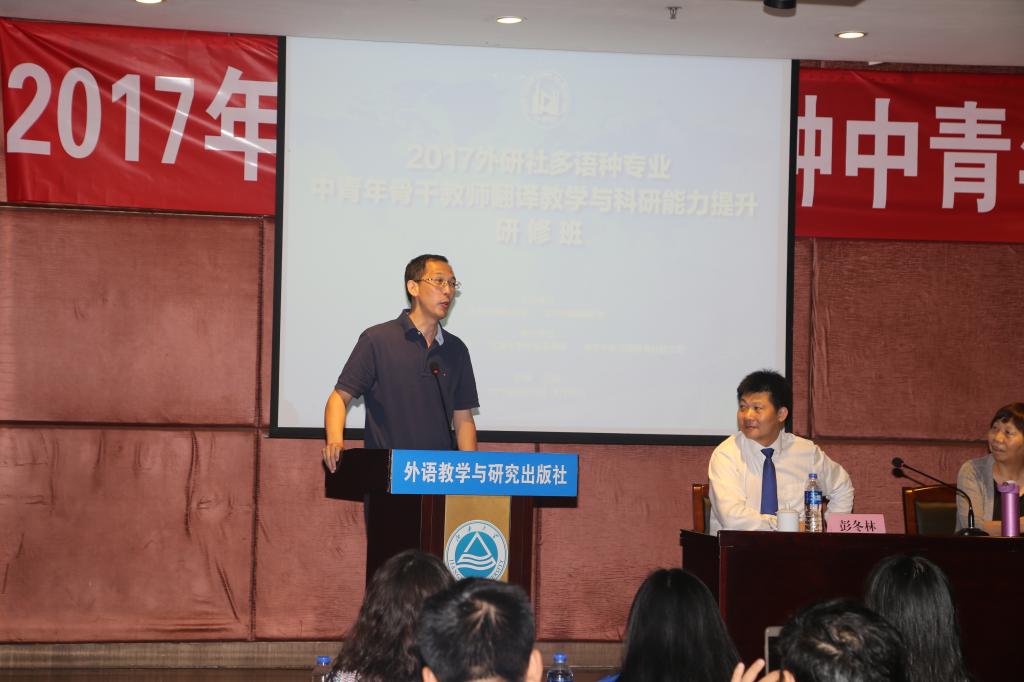 8月15-20日,由北京江南在线大学与北京市翻译协会主办,外语教学与研究出版社与我校江南在线学院承办的2017年高等学校多语种(日语、韩语、法语、德语、俄语、西班牙语、意大利语、阿拉伯语、越南语)中青年骨干教师翻译教学与科研能力提升研修班在我校长广溪宾馆落下帷幕。这次研修班是在国家“一带一路”倡议全面实施的大背景下,为提升多语种,尤其是非通用语种教师教学与科研能力,进而服务于国家多语种人才的培养来响应国家战略而采取的针对性举措与有效尝试。