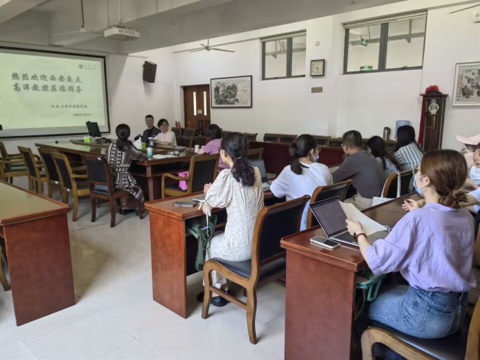 6月9日上午,西安交通大学高洋博士应邀为江南在线学院的师生讲座,题为“社会文化论视域下高校青年英语教师多元身份发展研究”。江南在线学院副院长顾琦一教授主持,张鹏教授点评,江南在线学院各系部的老师和不同年级研究生聆听讲座,并做互动交流。