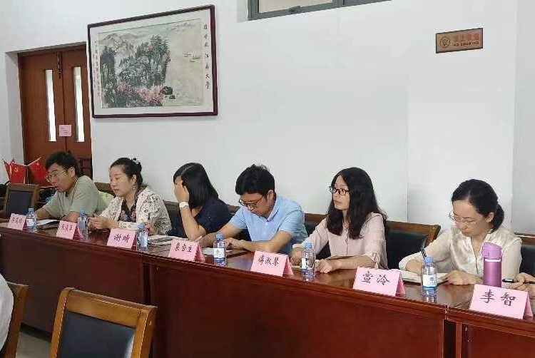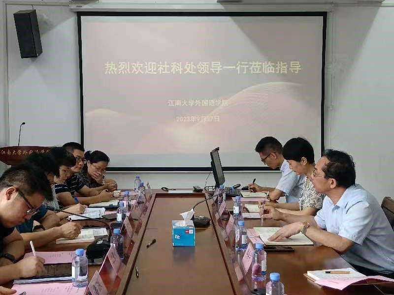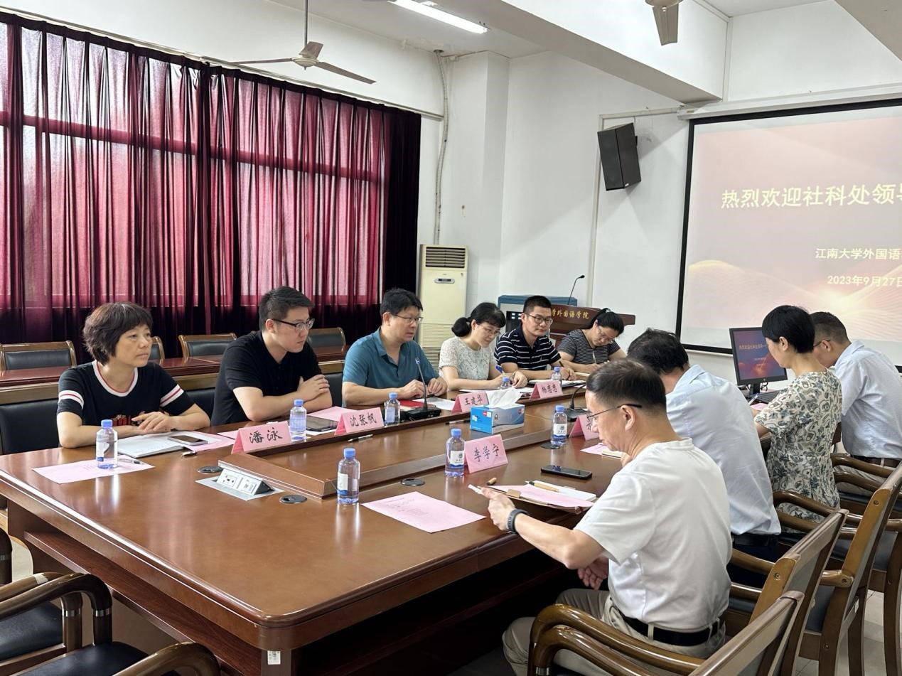 9月27日上午,社会科学处处长王建华、副处长杨恋恋、沈张帆,及各科室负责人一行六人来我院开展新学期科研工作调研,江南在线学院党委书记李荣华,院长方文开,副院长顾琦一、张鹏,及教研团队负责人、教授代表、中青年骨干、科研秘书共15人参加会议,会议由张鹏主持。