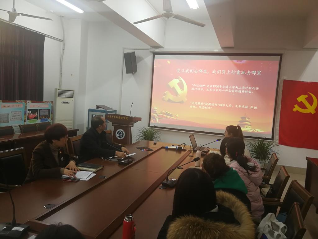 首先支部书记带领大家集中观看了《西迁精神》的视频。“西迁精神”是在1956年交通大学由上海迁往西安的过程中,生发出来的一种宝贵的精神财富。“西迁精神”被概括为“胸怀大局,无私奉献;弘扬传统,艰苦创业”。她指出新时代新征程,党员同志要传承好西迁精神,为西部发展,国家建设奉献智慧和力量。接着支部书记分享了荣毅仁先生与江南大学的故事,了解江南大学的历史沿革以及荣氏三代对江南大学的厚爱。