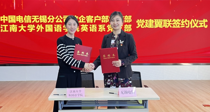 江南大学江南在线学院英语系党支部与中国电信无锡分公司政企客户部党支部开展党建翼联签约仪式