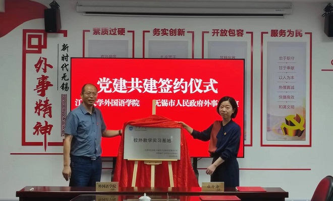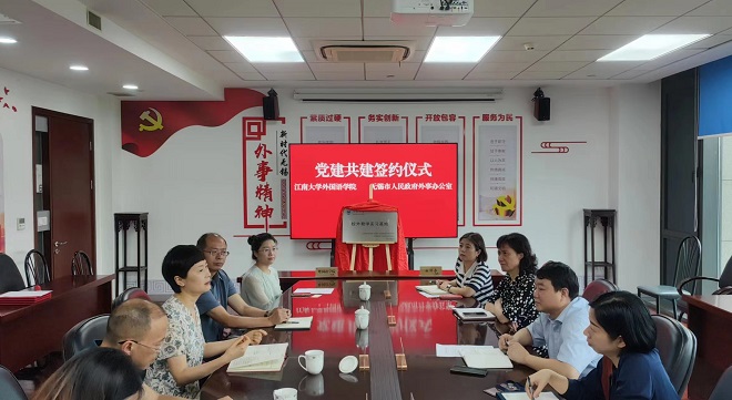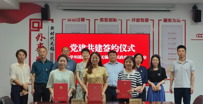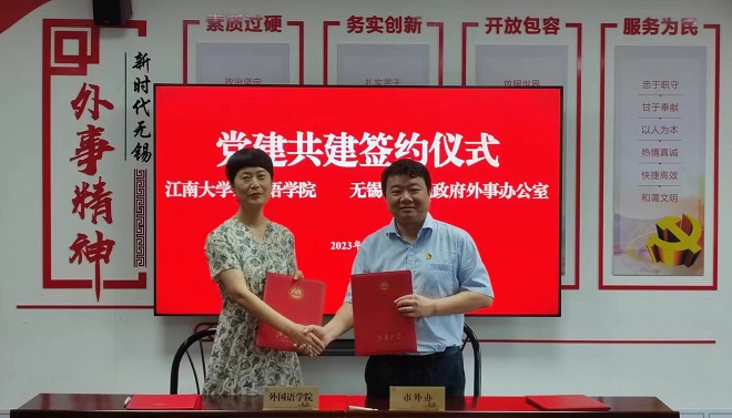 双方签订《江南大学江南在线学院与无锡市外办共建协议》《江南大学江南在线学院党委与无锡市外办党委共建协议》《江南在线学院英语系支部、研究生支部—市外办翻译支部共建协议》。