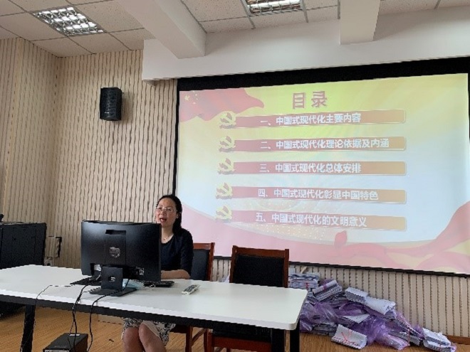 为深入学习贯彻习近平新时代中国特色社会主义思想,推进主题教育走深、走实、走心,引导党员深刻领会中国式现代化的内涵和意义,深刻领悟、贯彻党的二十大精神,2023年6月7日下午,江南在线学院副院长谢竞贤为拓展部党支部全体党员讲授了题为《以中国式现代化全面推进中华民族伟大复兴》的主题党课。