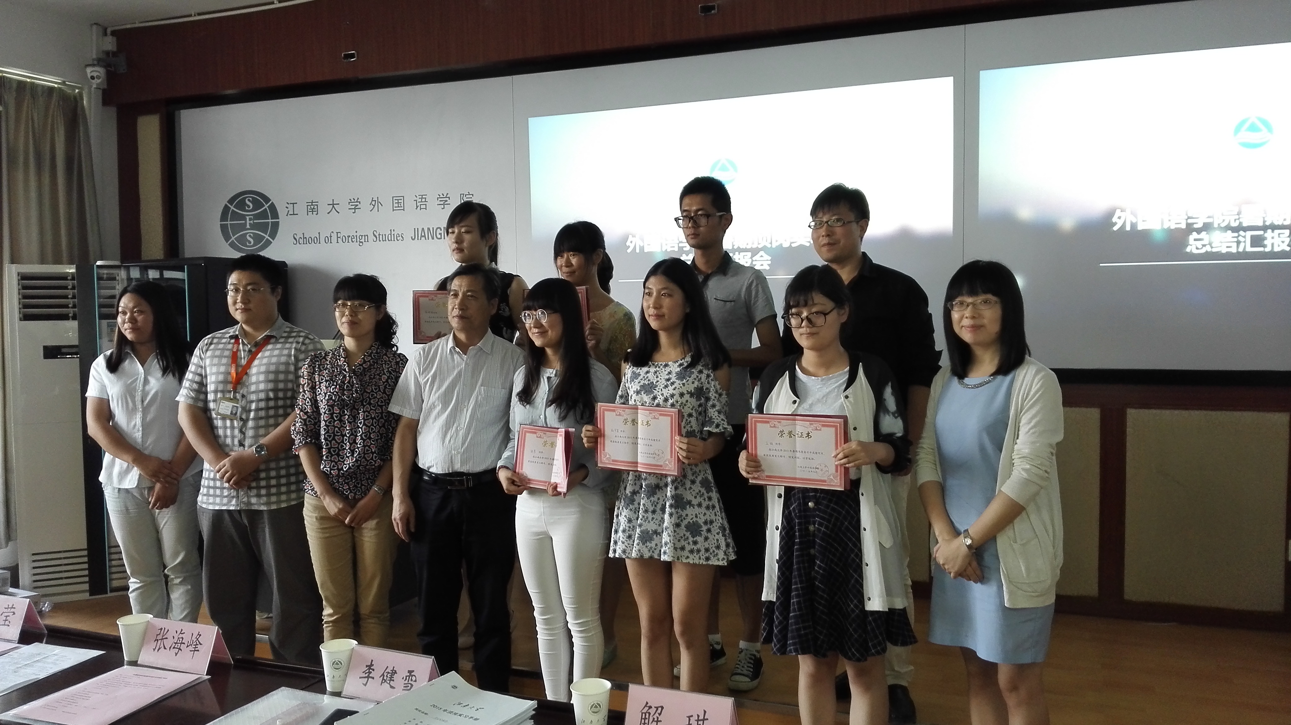 2015年9月16日下午,江南在线学院在二教2C618教室举行了2015年暑期顶岗实习汇报大会。江南大学学生工作(部)处副处长张海峰,江南在线学院副院长李建雪、院党委副书记赵莹,苏州新东方学校副校长解琪,无锡留园文化咨询有限公司负责人莫根磊,无锡博维教育培训中心人事经理黄瑞平及江南在线学院大一、大二学生出席了本次会议。