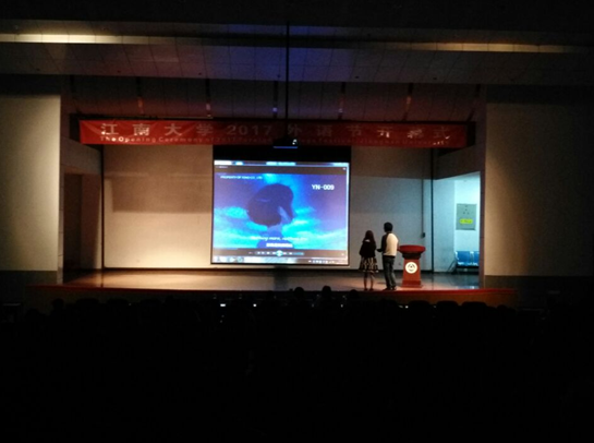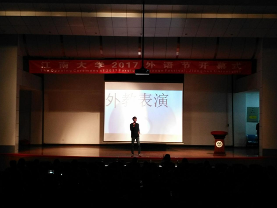 2017年4月5日晚,江南大学2017外语节开幕式暨外语配音大赛在南区大学生活动中心举行。本次活动由校教务处、团委、学工处以及研工部联合牵头主办,江南在线学院承办。江南在线学院党委书记黄城芳、副院长方文开、专业教师代表以及江南在线学院全体学生参加本次活动。开幕式由江南在线学院党委副书记、副院长赵莹主持。