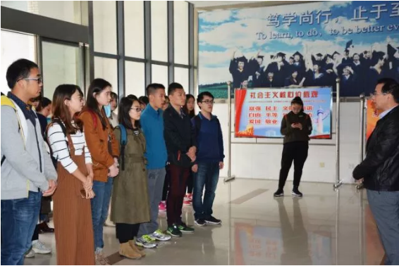 11月10日下午四点江南在线学院党委书记黄城芳、党委副书记赵莹在学院一层大厅慰问考研学子分团委书记杨艳老师主持慰问会