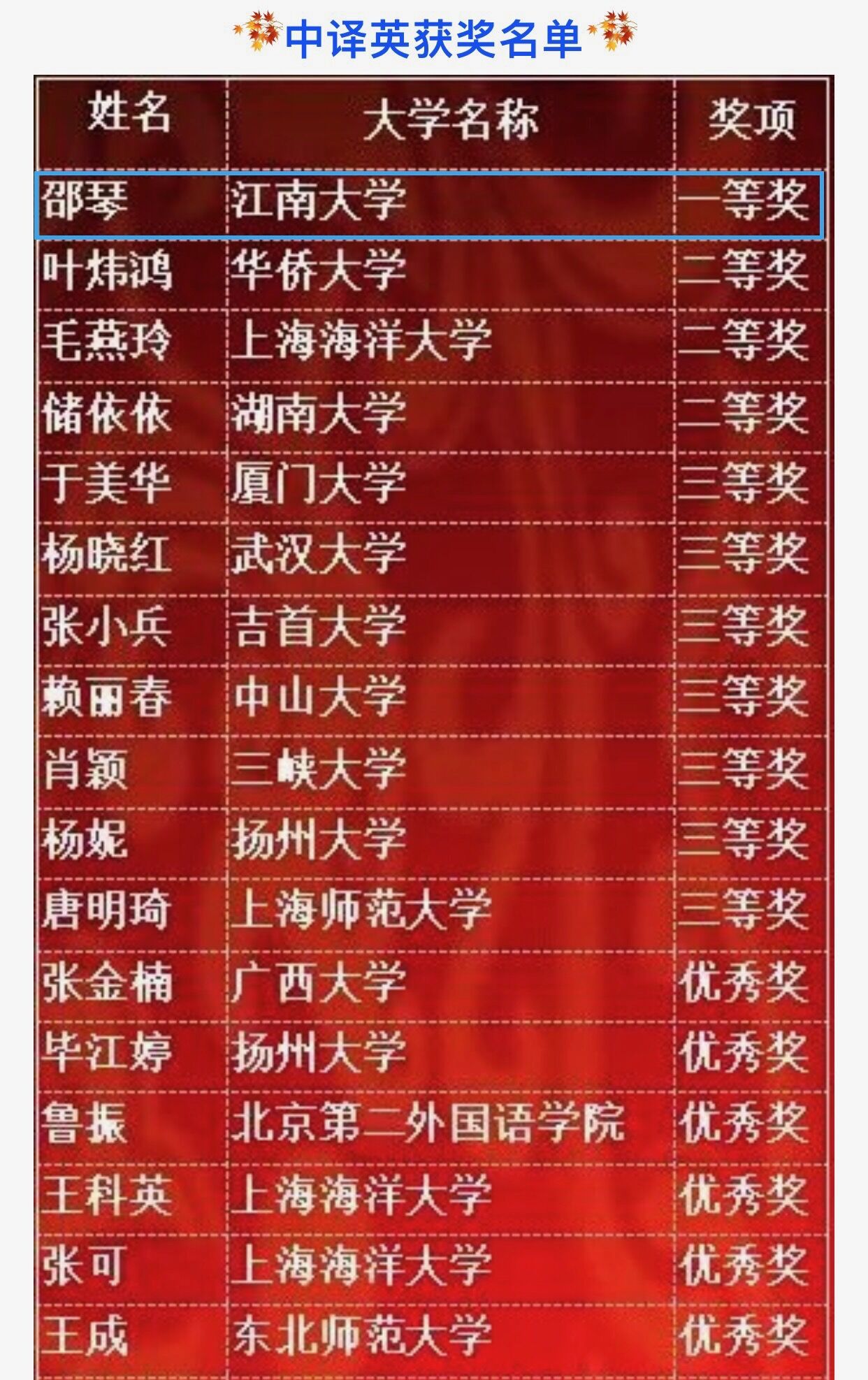 喜讯:江南在线学院英语1605班邵琴同学,荣获首届“海洋杯”海峡两岸翻译大赛“汉译英”一等奖。此次翻译大赛获奖名单于11月30日公布。