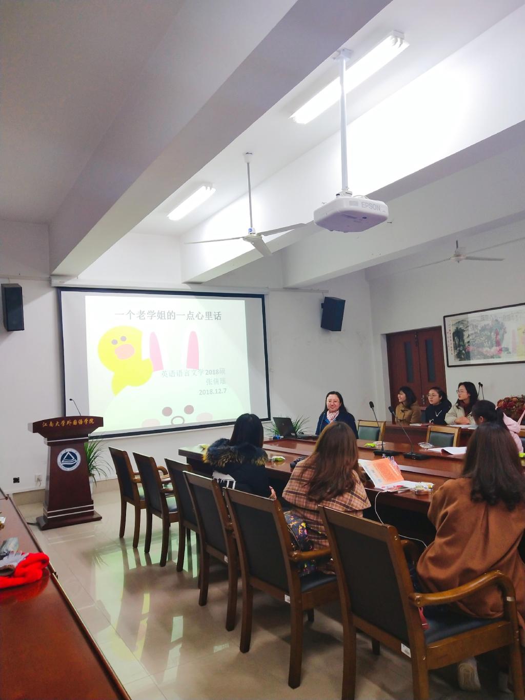 为积极引导本科生进一步学习深造,帮助本科生了解考研方面的信息,解答他们有关考研的种种疑惑,2018年12月7日晚,江南在线学院研本交流会在学院A349会议室召开。此次研本交流会在分团委指导下,由我院研会承办。本科英语、日语专业的30余位同学参与交流会。