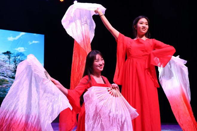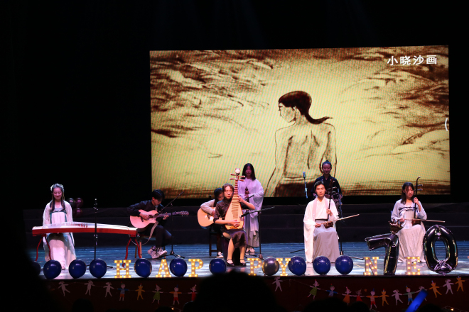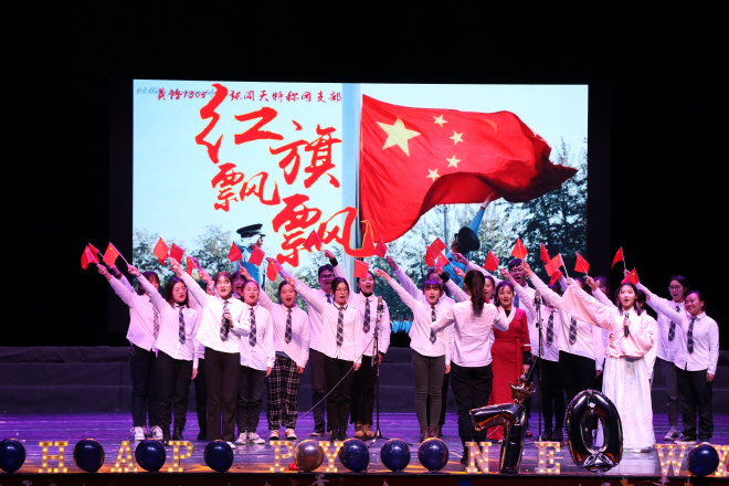 晚会开场由勿氧器乐团带来《董小姐》,气氛热烈,燃爆全场。随后,晚会正式开始,由外院各位老师录制的祝福视频展现了江南在线学院温暖大家庭的温馨氛围,同时表达了各位老师对同学们的衷心祝福和殷切的期望。接下来十三个节目依次精彩呈现,古风舞蹈《清平乐》舞步优美,极具中国风的优雅与端庄;小品《我是李焕英》既有风趣幽默,也有温情动人,演员精彩的表演让我们在欢声笑语中体会到真情的价值;八协音乐社带来改变歌曲《八月十五忆吃面兄弟》,年轻富有朝气的歌词和曲风点燃现场气氛;院艺术团带来的舞蹈《ADIOS》青春活力,展现了外院活力向上的学习风貌;由范喆老师和研究生张倩瑶带来钢琴小提琴合奏曲目《Adagio》,为大家呈现了音乐盛宴;英日文歌曲串烧《Oops,樱花》歌曲轻快活泼,展现了外院学子扎实的语言功底;19级带来了情景剧《来自江南的白雪》融合当下幽默喜剧元素,展现了19级新生极佳的创意;激情活力的爵士舞《bang bang》,活力四射,瞬间点燃全场同学的热情;器乐《大鱼海棠》宛转悠扬,中国风浓郁;18级特称团支部带来的红歌《红旗飘飘》为祖国母亲70华诞献礼;19级辅导员携手副班带来舞蹈《遇见青春》,轻快可爱的舞步洋溢着青春气息;钢琴伴舞《樱花》动听美妙,舞姿柔美动人;最后外院学生会为大家带来大合唱《我的秘密》,晚会在热烈的气氛中圆满结束。