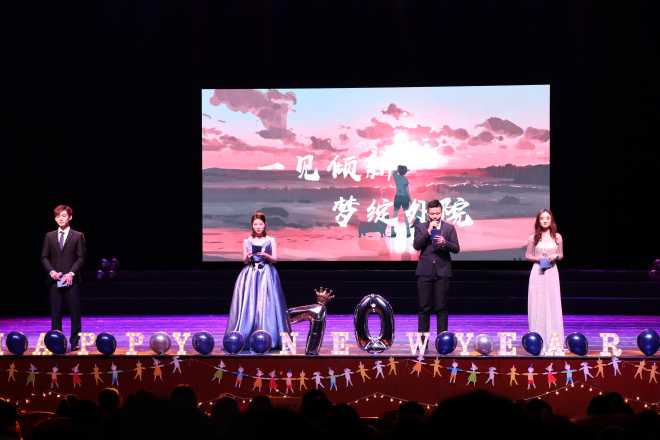 在新的一年里,遇见更好的自己。江南在线学院“一见倾新,梦绽外院”迎新晚会于2019年12月20日晚18:30在文浩馆如期举行。江南在线学院党委书记黄城芳,党委副书记、副院长刘伯贤,副院长朱义华,副院长施惠平,办公室主任华芒,分团委书记杨艳,辅导员老师以及各位班主任老师出席迎新晚会。学院各年级学生热情参与,师生同乐,欢聚一堂。