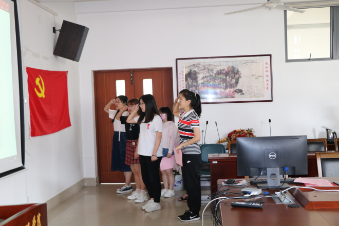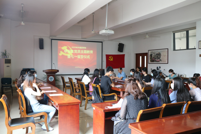 6月19日上午,江南在线学院在A349会议室举行2020届毕业生党员主题教育活动暨新发展党员七一宣誓仪式。参加这次活动的有学院党委副书记刘伯贤、分团委书记杨艳、学院辅导员以及毕业生党员。仪式由杨艳主持。