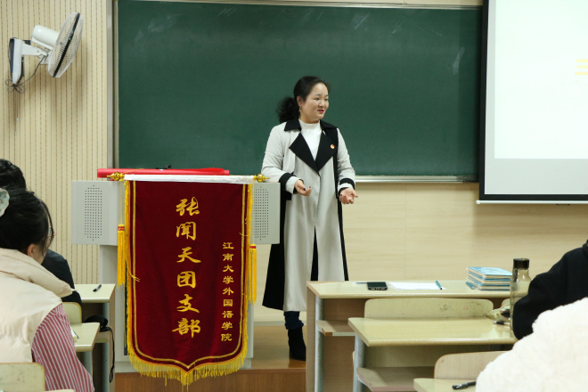 11月23日9:40,江南在线学院英语1805张闻天特称团支部在第二教学楼2B207教室召开了第二次主题团日活动。机关退休第四党支部书记鲍国庆、社桥退休党支部书记殷均一、江南在线学院分团委书记杨艳受邀出席。