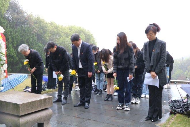 百年风华,初心不改。时近清明,为了缅怀革命先烈,弘扬爱国主义精神,4月1日下午,由社会资源处、江南在线学院共同组织,在江南大学原副校长王武、社会资源处处长黄敏、副处长窦新华、江南在线学院分团委书记陆芳的带领下,江南在线学院第41期分党校学员以及部分团员代表参与了马山荣氏墓祭扫活动,以此缅怀原国家副主席、中国近代著名实业家荣毅仁同志的丰功伟绩和崇高品格。