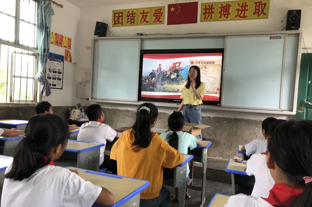 江南情意暖,独洞不孤独。实践团成员们来到从江县洛香镇独洞小学调研基础英语教学现状。在了解到英语教学资源紧缺后,立即表示愿意利用江南在线学院的专业优势帮助独洞小学完善课程体系建设,并计划组织学院学生与当地孩子们连线,开展在线教学。实践团中的党员还为独洞小学四五年级的学生讲授了一堂党史微课,带领孩子们回顾了建党百年历程中的闪光事迹。课后,实践团成员前往独洞村建档立卡户等贫困学生家中进行走访,并选定3名最贫困的学生给予每人每年1200元的爱心助学基金资助,直至其完成小学学业。
