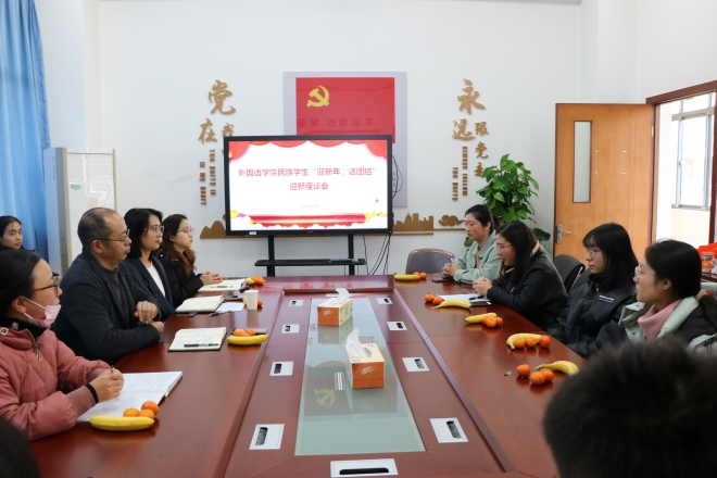 为了进一步了解我院少数民族学生的学习和生活情况,帮助少数民族学生更好的适应大学生活,12月22日下午3:30,江南在线学院在A331召开2021年少数民族学生“迎新年,话团结”迎新座谈会。学院党委副书记刘伯贤老师、新疆维吾尔自治区教育厅派驻江南大学教师古扎努尔、学院关工委委员吴艳敏、学院分团委书记陆芳、学院行政党支部华清、王莉莉参加座谈会,座谈会邀请了学院少数民族学生代表参加。会议由陆芳主持。