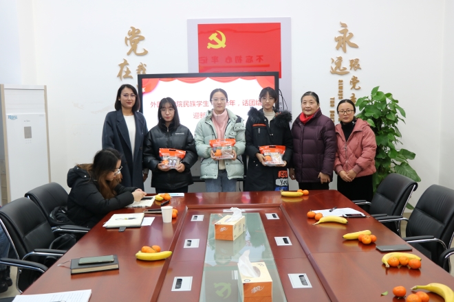 最后,参会老师为同学送上学院准备的慰问礼包。江南在线学院一直关注着少数民族学生在校的学习和生活情况,本次座谈会的召开不仅增进了学院师生与少数民族同学之间深层次的沟通和交流,更为学院少数民族学生的育人工作奠定了良好基础。