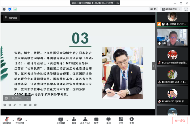 通过本次线上圆桌交流会,参加的同学们对实验语言学有了一定的认识,在激发兴趣的同时也让各专业有志于语言学研究的江南学子对这门学科有了更深层次的认识和领悟。后期,Sharing Space分享交流圆桌会将继续邀请相关老师进行线上分享,通过“云”端交流的形式丰富线上活动,激励大家相互学习,共同提高。