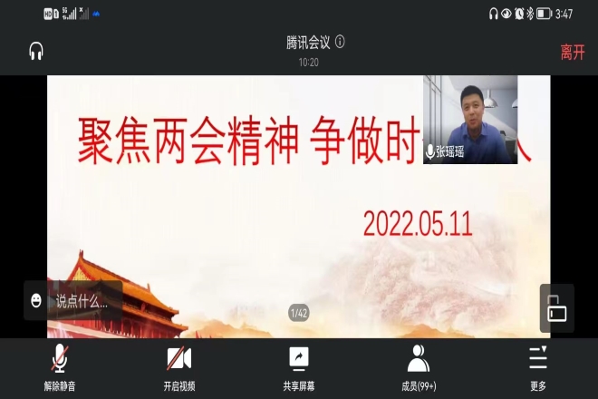 5月11日下午,江南在线学院青马工程训练营与入党积极分子培训班举办线上理论学习讲座,张瑶瑶老师为大家带来题为“践行两会精神,争做时代新人”的讲座,学生会组织部部长熊雪冰主持会议。