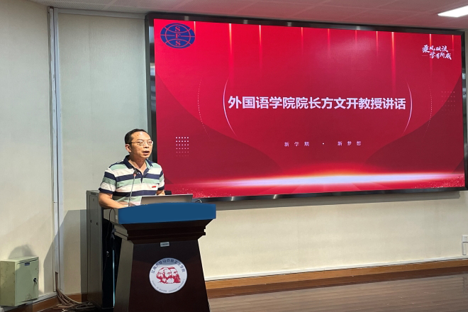 最后,江南在线学院院长方文开讲话。他对同学们提出希望:用外语讲好新时代的中国故事。做到这一点,要理解时代,认识时代,打下扎实基础,了解中国文化。讲好中国故事是当代青年之责任,外院学子定当不负众望,以时不我待的精神,用外语讲好中国故事,讲好传统文化的故事,讲好未来的故事。