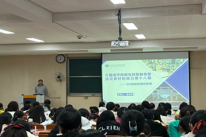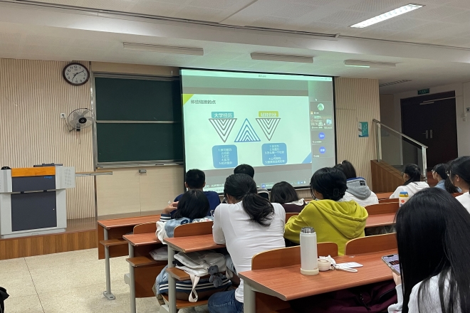 10月20日,江南在线学院新生转型教育暨“遇见更好的自己”第十八期在教学楼1A410开展。本次活动以《在对的时间做对的事—文科生的创业历程》为主题,邀请了学院优秀毕业生、脑洞英语课堂创始人谢婷婷线上分享创业经验,学院22级新生以及部分21级、20级同学参加分享会。分享会由辅导员苗文建老师主持。
