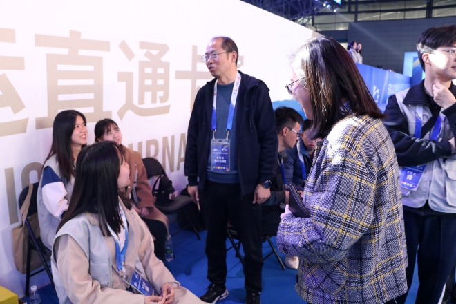 3月31日,江南在线学院党委副书记刘伯贤、分团委书记陆芳到赛事场馆慰问志愿者,刘书记表示:志愿者们吃苦耐劳的工作精神、耐心且热心的服务态度展现了江南学子的良好风貌,希望大家在志愿服务的岗位上发光发热,在贡献青春力量的同时收获一份成长。
