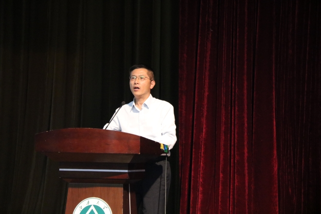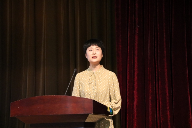 随后,学院党委书记李荣华发表讲话并宣布开幕。李书记代表学院党委向外语文化节的开幕表示热烈祝贺,并对应邀参加开幕式的领导、来宾、老师和同学表示热烈欢迎。在讲话中,李书记表示:外语文化节不仅是加强校园文化建设的重要阵地,更是提升学生专业素质和营造良好学习氛围的有效载体。希望同学们通过文化节,能够深入学习贯彻党的二十大精神,做到放眼望世界,迈步向未来。