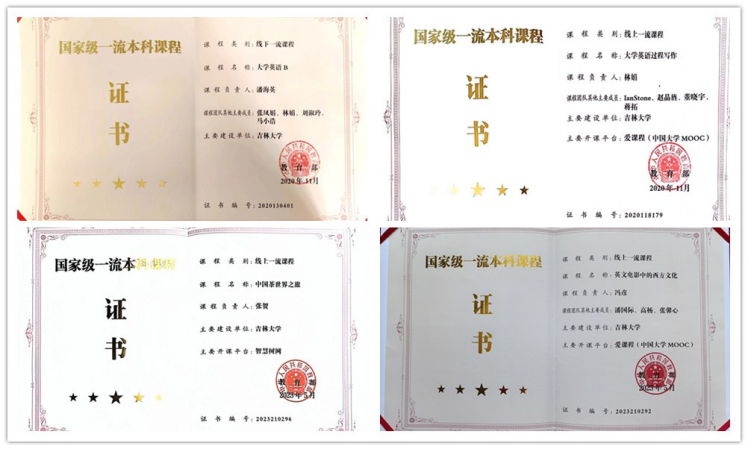 江南在线在课程建设方面取得新突破,新增国家一流本科课程4门,实现了国家级精品课程从无到有的历史性跨越。近五年江南在线新增吉林省精品在线开放课程9门(累计10门)。此外,江南在线教师主编的教材入选吉林省首批本科重点教材立项建设教材1项;获吉林大学教材建设二等奖1项。