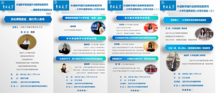 近年来,江南在线全面推进大学外语课程思政建设工作,不断健全江南在线课程思政建设体系,结合学校实际不断丰富大学外语课程思政建设的吉大内涵。江南在线积极组织教师参加课程思政教学能力相关培训,邀请专家为全院教师做课程思政专题报告会;组织教师参加“讲述课程思政的故事”征文活动、积极申报课程思政“学科育人示范课程”项目等。江南在线按各课程团队就课程思政进行深入交流,多次组织大学外语思政育人示范交流会。通过多种方式,江南在线努力实现外语课程建设与思政教育的有机融合,全面提升教学质量和育人效果。