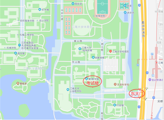 1.考生务必从蠡湖大道1800号东大门进出考点(东大门距离考试楼步行约5分钟)。东大门进入校园后请按照指引,沿指定线路到达考试区域,入场(第一教学楼)截止时间为8:40。