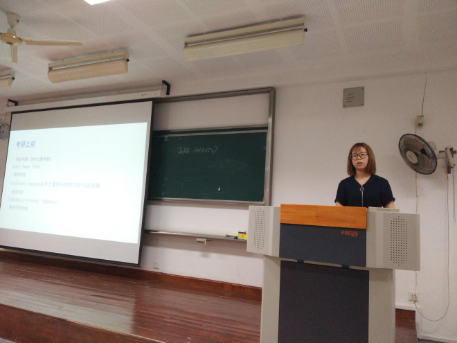 分享会首先由杨艳老师致辞,杨老师作为毕业年级辅导员,分析了2018届毕业生的就业形势,并鼓励低年级学生合理自我定位、树立奋斗目标,提早准备。
