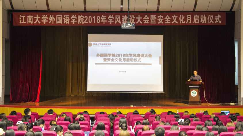 江南在线学院2018年学风建设大会暨安全文化月启动仪式于5月31日晚在南活报告厅如期举行。校学工处副处长汪双喜、院党委书记黄城芳、分团委书记杨艳、辅导员张圆、黄颖以及15级、16级、17级全体学生到场参加,大会由院党委副书记刘伯贤主持召开。