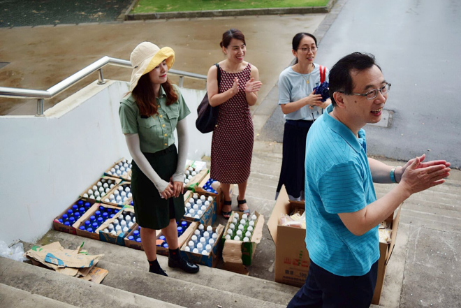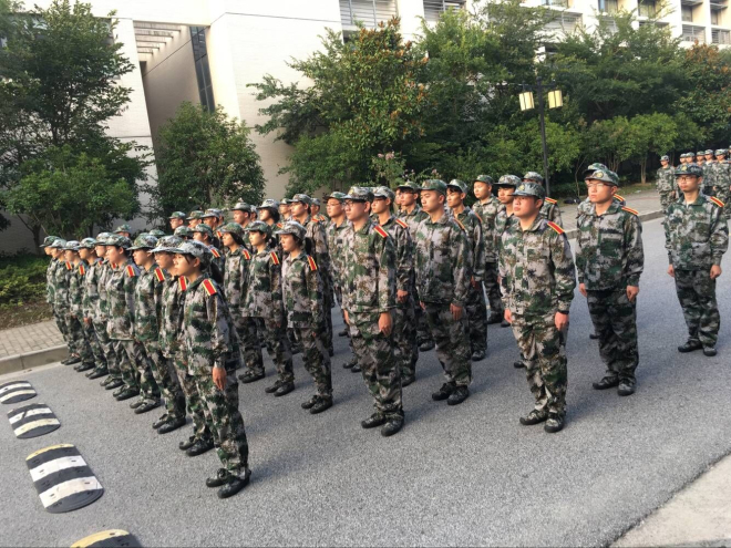 八月的天,时而骄阳似火,时而阴雨连绵,又是一年军训时。军训场上,外院学子斗志昂扬,在一片军绿色的海洋中,锻炼着坚韧不拔的意志,编织着五彩斑斓的梦。为进一步落实军训后勤工作,表达学院对同学们的关怀, 8月25日上午,学院党委书记黄城芳,学院党委副书记刘伯贤,班主任代表华芒老师、杨艳老师等冒雨慰问了江南在线学院2017级参训学生及承训教官。