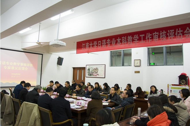 下午4:30-5:45,在文科楼A349会议室召开审核评估反馈会,人事处、教务处、设备处、高等教育研究所等职能部分的相关领导及江南在线学院领导、日语专业全体教师参加了反馈会。专家组成员在查阅材料和现场考察的基础上,充分肯定了日语专业在师资队伍、教学管理、人才培养质量、实验室建设等方面所取得的成效,同时对明确人才培养目标、日语图书资料建设、实习基地建设等方面提出了中肯的意见和建议。专家组还指出,江南大学江南在线学院日语专业可以依托无锡的日资高地,提升人才的培养质量;依托学校的优势学科,打造自己的专业特色;充分发挥现有的师资力量,强化团队建设,注重跨学科研究,完全可以实现提升教师团队实力和专业教学水平的目的;通过举办国内国际会议和学科竞赛,逐渐提升专业和学校的影响力。