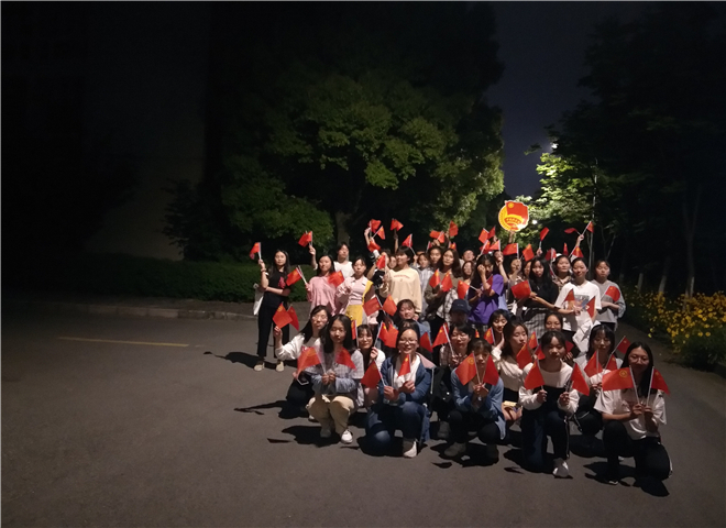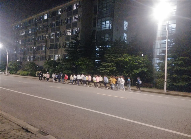 青春与时代相辉映,青年与祖国共奋进。为纪念五四运动100周年,继承和弘扬五四精神,展现当代青年青春风貌,进一步增强青年学子的身心健康,江南在线学院“增强心动力训练营”与2018级八个团支部共同开展“五四青年节荧光夜跑活动”。青年学子相约在五月每周一三日的夜晚,手举国旗和共青团团旗,在江大春暖花开的校园完成4.1公里的奔跑。同学们高唱《我和我的祖国》等爱国歌曲,在校园中形成一片红色海洋。