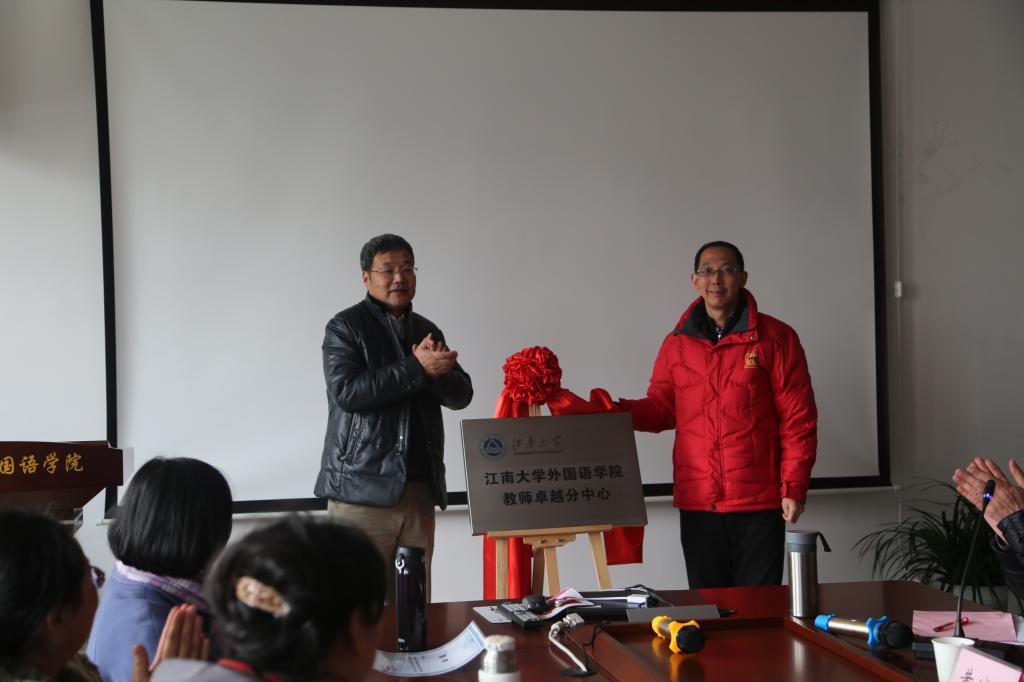 会上,领导向五位教学督导颁发了聘书,纪志成副校长与龚晓斌院长共同为“江南大学江南在线学院教师卓越分中心”揭牌。