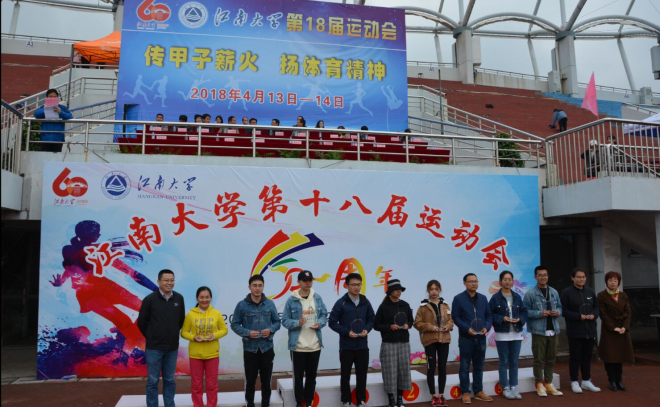 4月14日下午,江南大学第十八届校运动会在体育中心圆满落下帷幕。淅沥的江南春雨没有浇灭同学们的热情,反而将赛道上冲刺跳跃的身影衬托得更加令人动容;料峭的春风也没有吹灭运动员们的热忱,反而更助力他们奔向胜利的彼岸。