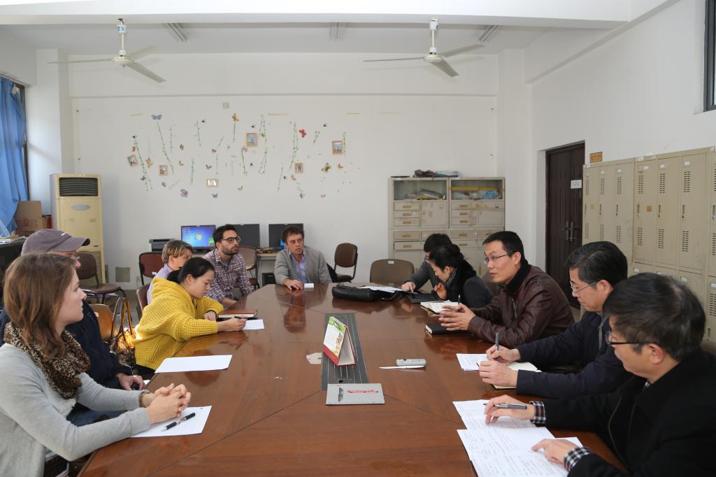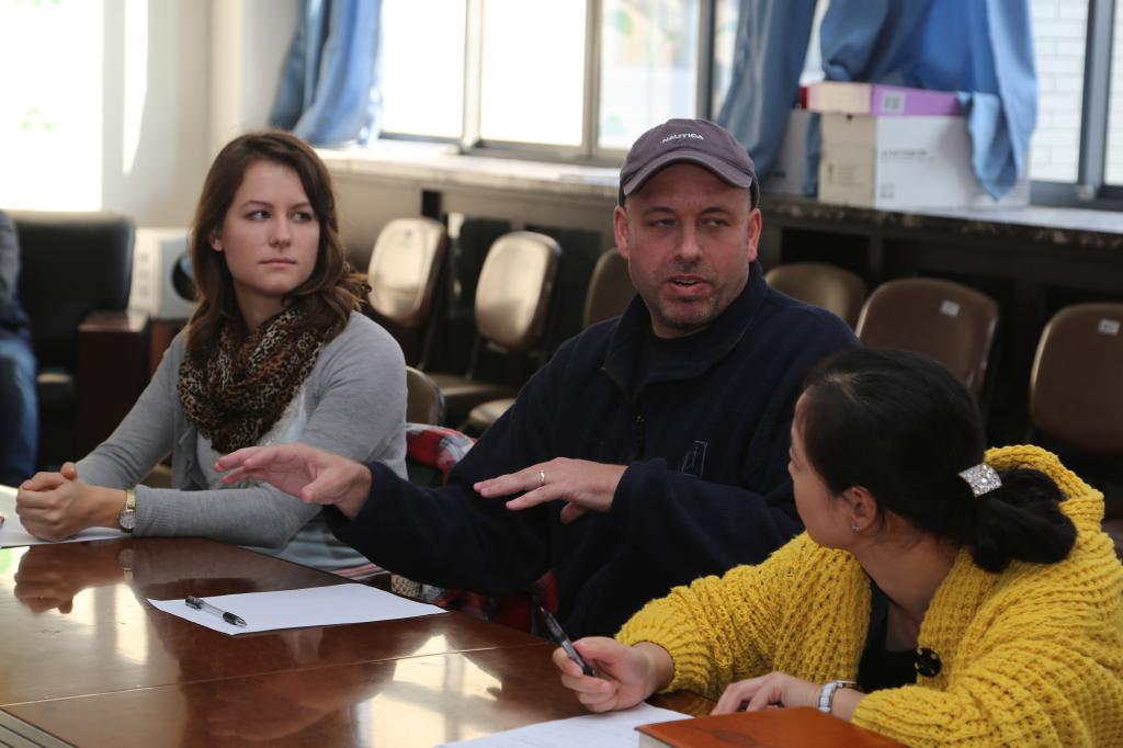 接着与会的五位外籍教师分别介绍了自己所教授的科目和平时课堂采取的针对不同课程的教学方法、教学感悟。这种轮流介绍为定期交流的外教们提供了一个相互学习、相互启发的良机,对他们日后的教学工作大有裨益。在这一过程中,有外教对目前采用的英语专业口语教材提出了中肯的意见和建议,这也为将来共同编写我院自己的教材创造了契机。另外,就已启用一个学期的《外教手册》中的某些问题,在座的外教、外教联络员和英语系领导作了较详细的探讨。