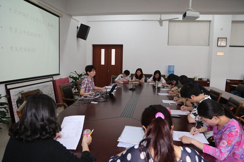 本次考试报名首次采用教育部考试中心通用考试报名平台系统, 为了确保考试顺利进行,社会服务部工作人员从2月份起就忙于考试的前期工作,包括考试宣传、考生报名咨询、考试报名平台系统的调试和数据上传、考场安排、考试材料准备等工作。考试前期分别召开BEC考前考务工作会议、考官培训会议。这两次考试,共计考官16人,考务6人。整场考试分为上午笔试、下午口试,从早晨8点持续到下午5点30分,每位考官和考务人员以认真、细致的工作态度完成每部分考试工作。考生们此次考试的参与度也非常高,考场秩序井然。