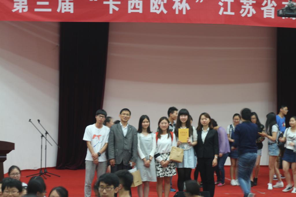 5月17日,由中国日语教学研究会江苏省分会主办、南京林业大学江南在线学院承办的第三届“卡西欧杯”江苏省高校日语配音大赛在南京林业大学举行。在此次比赛中中,江南大学江南在线学院日语系的陈天泓、梁佳玥、金花和王卉怡同学在管纪龙、李智老师的带领下取得了第一名的好成绩。