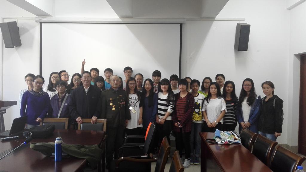 2015年11月6日下午,江南在线学院在文科楼A349举行了主题为“走近抗战老兵,悟爱国主义精神”的党团共建座谈会。我院党团共建结对支部——社桥党支部书记厉光裕、支委杨丽娟、新四军抗战老兵许德山、英语1403团支部全体成员参加了此次座谈会。座谈会由分团委书记陈昀主持。