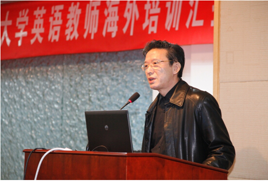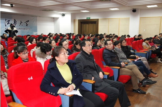 11月25日下午,“江南大学2015暑期大学英语教师海外培训汇报会”在文浩馆205报告厅如期举行。人事处张影陆处长、国交处钟芳处长、教务处曹栋处长、学院龚晓斌院长、黄城芳书记、李健雪副院长等以及我院基础部、拓展部、英语系全体教师近100人参加了此次汇报会。会议由江南在线学院副院长施惠平主持。