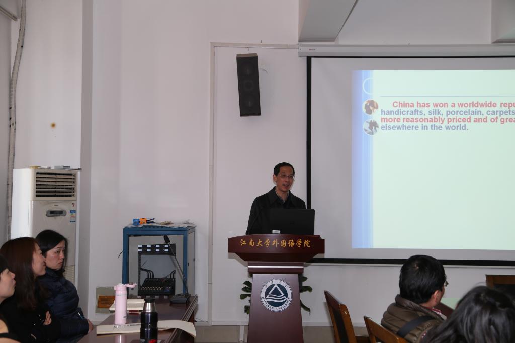 2016年3月16日下午,江南在线学院A349会议室里济济一堂,全体大外教师和部分英语专业的教师聆听了江南在线学院院长龚晓斌教授的讲座《英语教学:课堂内外的交互设计》。