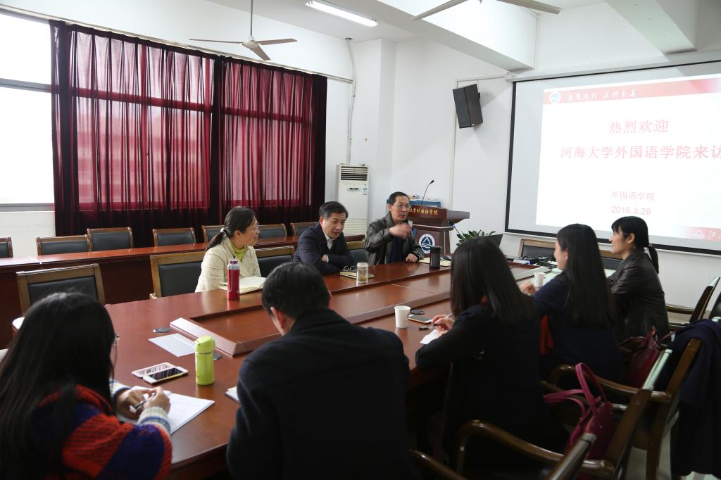 329日下午,河海大学江南在线学院杨荣华副院长带领朱志梅副书记、系主任等一行5人来访。我院龚晓斌院长、李健雪副院长、施惠平副院长热情接待了来访宾客。