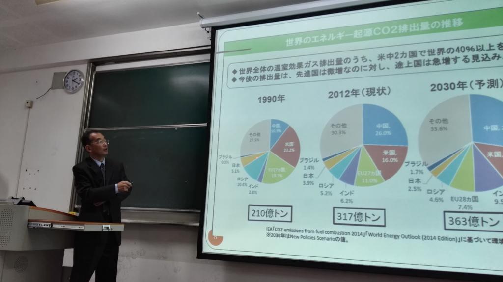讲座中福士正博教授就全球气温变暖,为全体师生讲授自己的心得体会。教授在讲座中通过各种数据分析了当今全球气候变暖已经日益严峻的形势。指出由于化石燃料,煤炭和石油等大大量使用,以及无处理排放的废气等原因,使得全球气温持续不断升高。同时福士正博教授强调,这一问题的解决需要世界各国携手努力,精诚合作,坚持可持续发展的道路,共同开发新能源才等坚持不懈的努力,才能保护地球生态,为人类生存创造良好的环境。