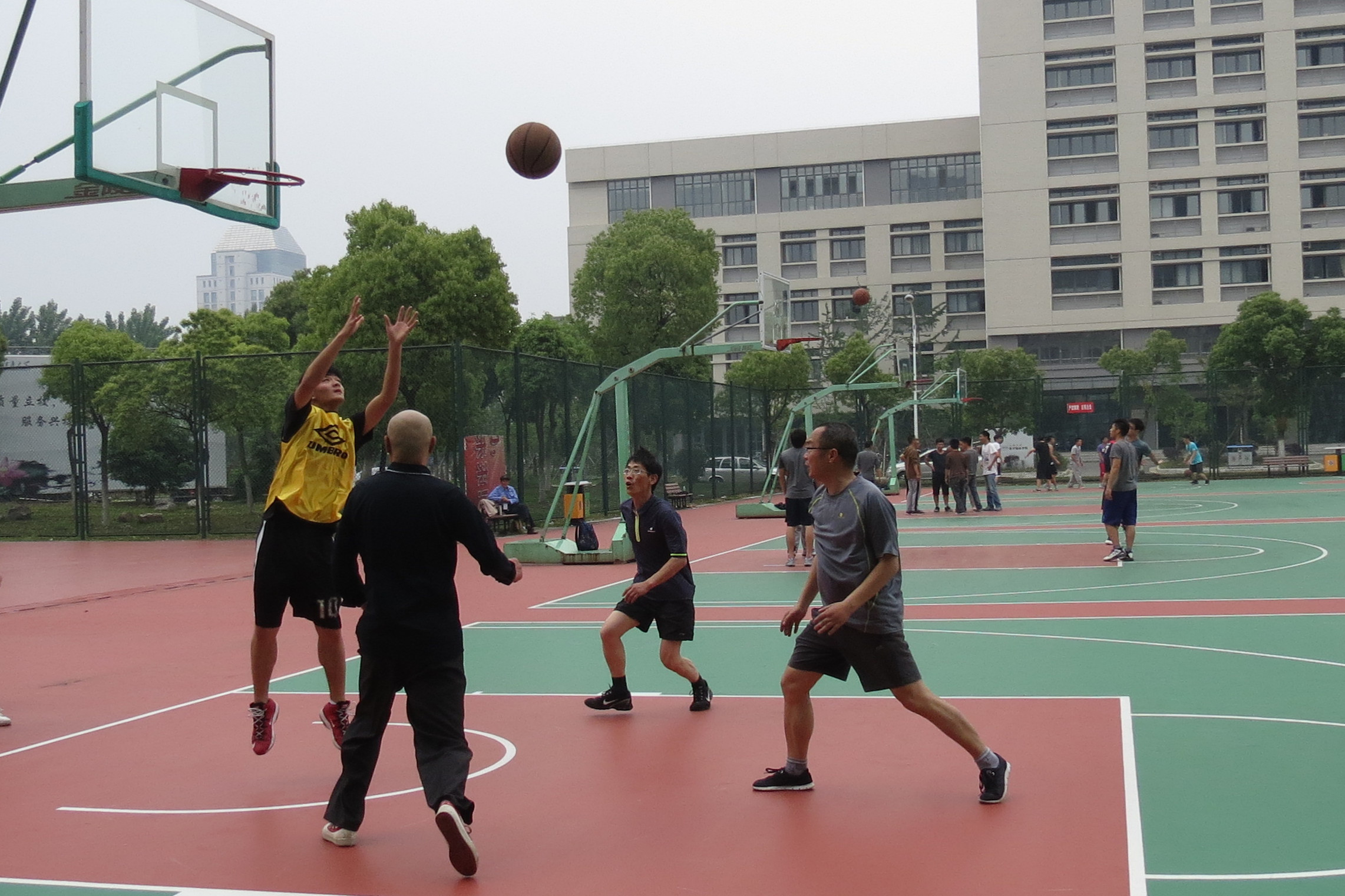 2014年5月14日江南在线学院分工会和分团委联合学生会体育部在我校南区篮球场进行了第一场师生男篮友谊赛。外语学院篮球队的8名教师中有党委书记周建中,学院分工会主席管纪龙。赛场上,8位篮球教师与2013级篮球爱好学生展开激烈而又友好的赛场角逐。师生双方各有特色,攻守基本相当,赛场气氛热烈。