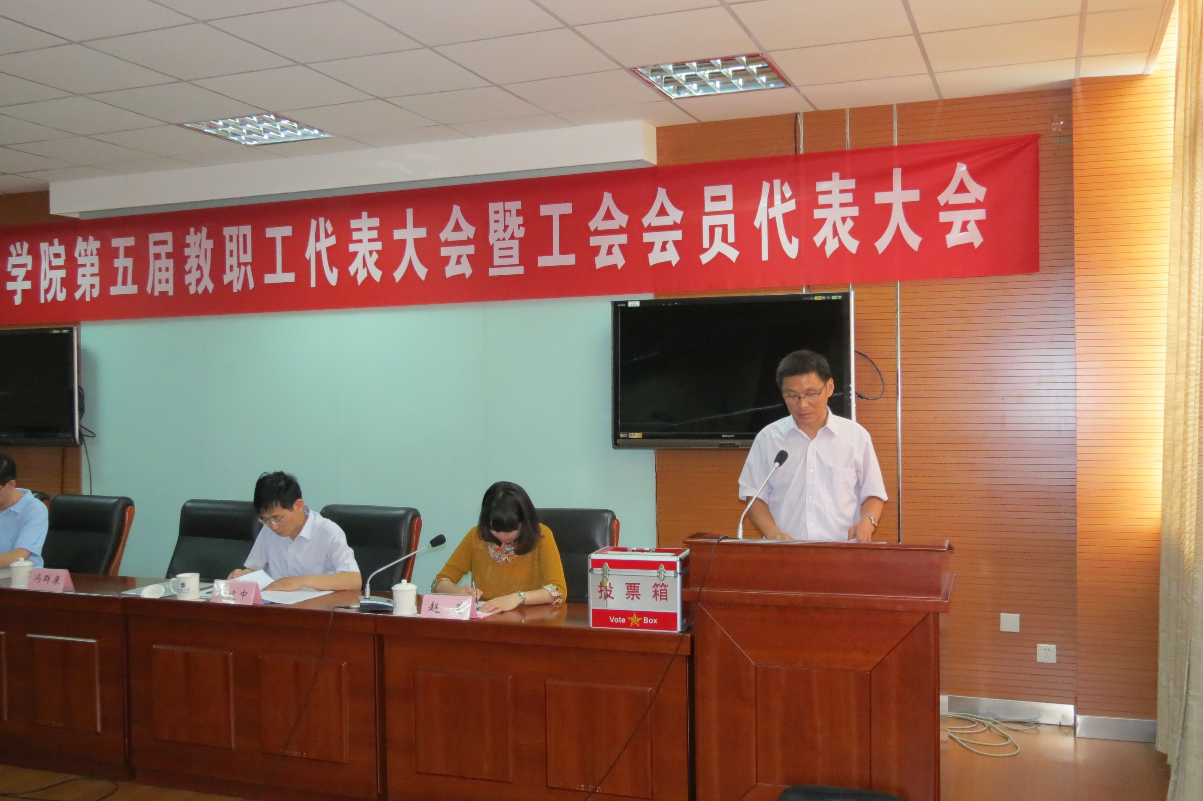会上,龚晓斌院长作了题为《凝心聚力,务实进取,为江南在线学院的可持续发展努力奋斗》的2011-2013行政工作报告,院分工会主席管纪龙代表学院第四届分工会委员会作了2011-2013分工会工作报告,随后52名教代会代表投票选举产生学院新一届分工会委员会委员和教代会执委会委员。