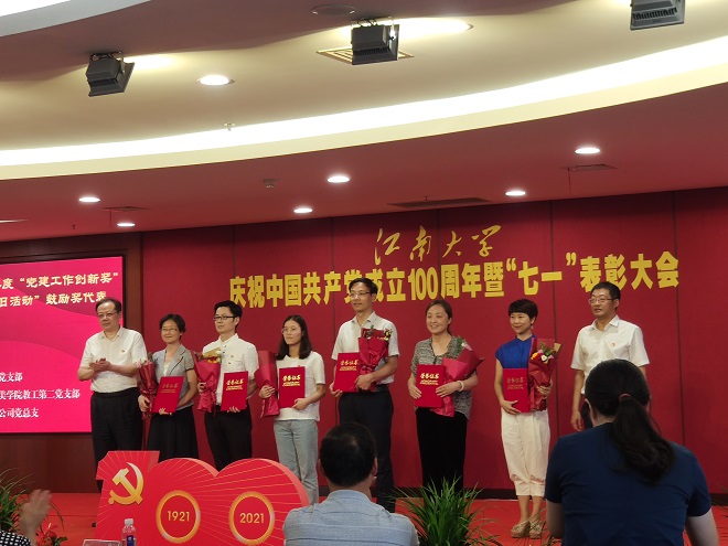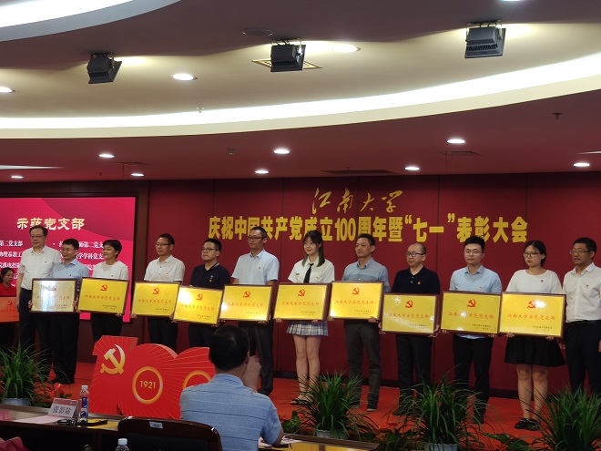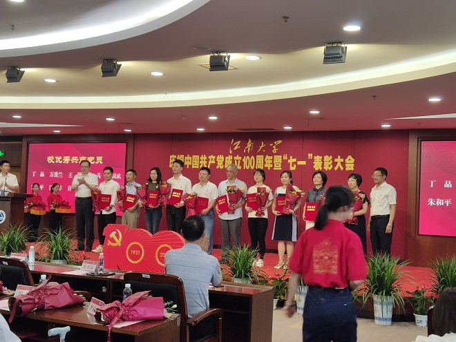 6月30日下午,江南大学庆祝中国共产党成立100周年暨“七一”表彰大会在我校图书馆五楼报告厅隆重举行,校党委副书记戴月波主持大会,校党委书记朱庆葆、校长陈卫为受表彰的个人和集体代表颁奖。