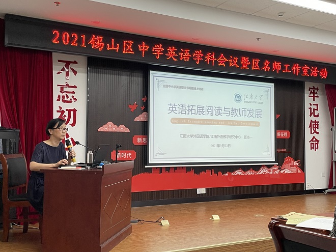 9月23日下午,为推进“英语整本书阅读教学”,研讨“中学英语课堂教学的有效性”,江南外语教学研究中心携手锡山区教师发展中心在二泉中学召开了2021锡山区中学英语学科会议暨名师工作室活动。江南大学江南在线学院教师代表、锡山区各初中教研组长、各年级备课组长、名师工作室成员等参加了此次会议。